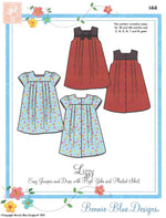 Easy to make Jumper or Dress with high yoke and square necline. Up-to-date styling with pleated skirt. Back has full length button closure. Detailed instructions and illustrations are included for quick and easy construction. Detailed piping instructions also included.