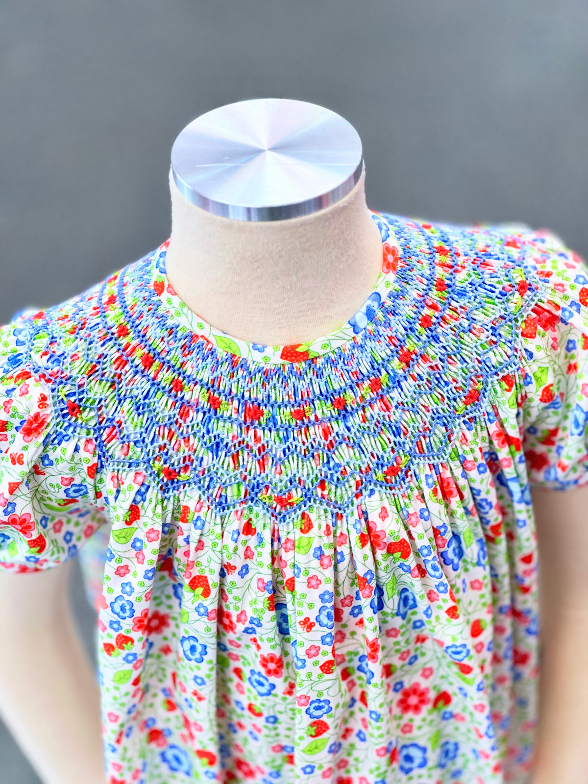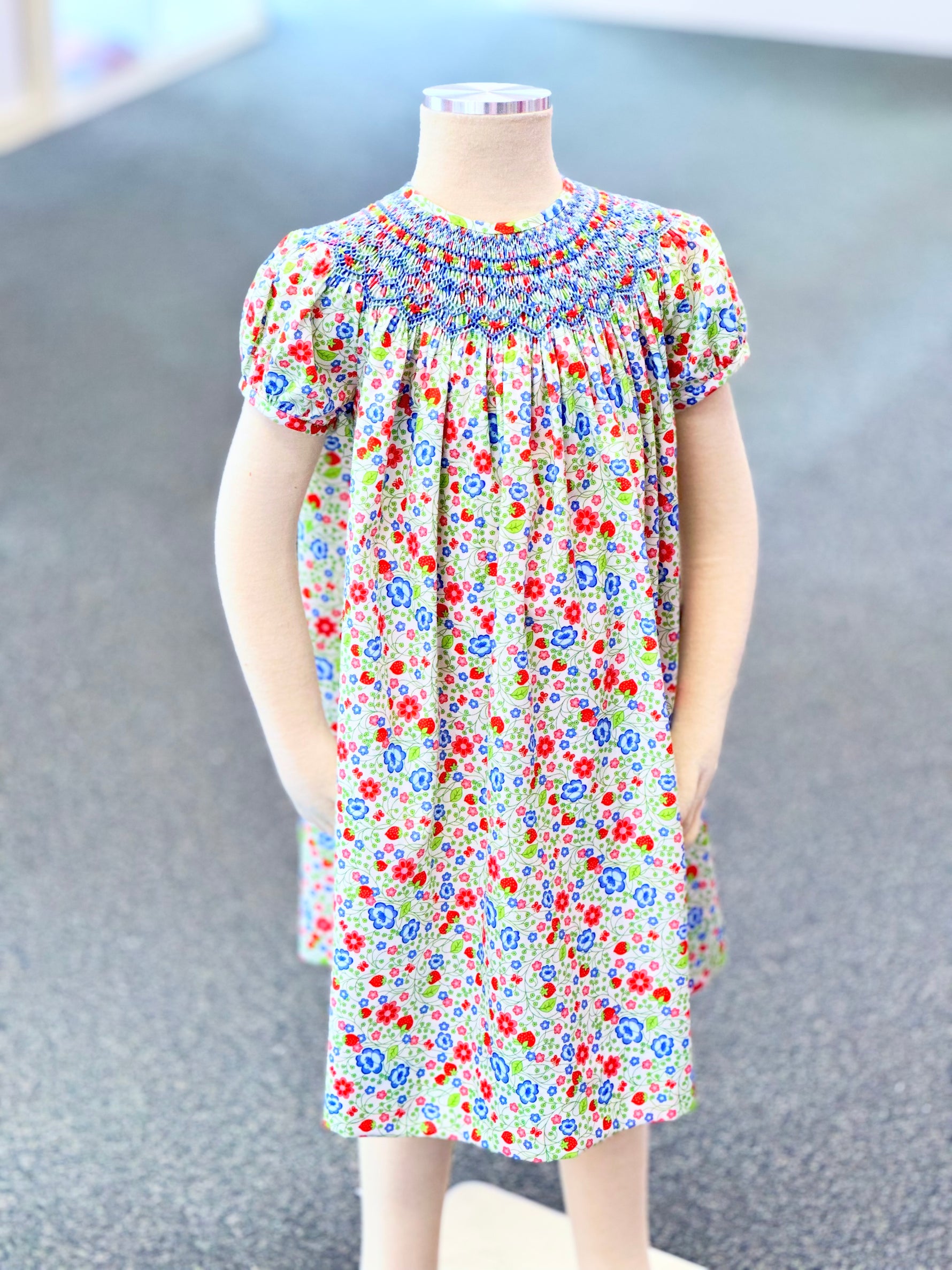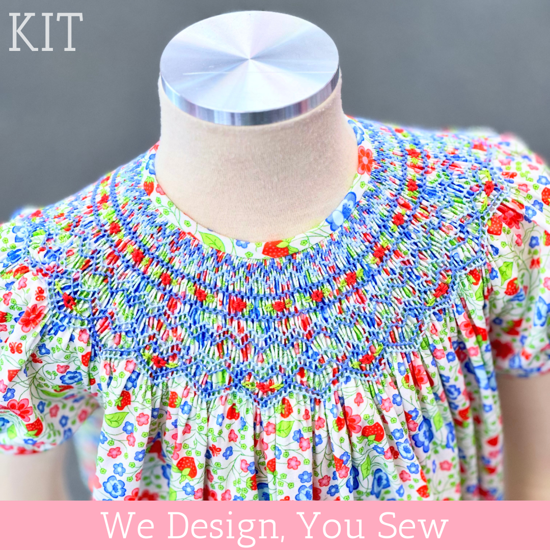 A bright and fun take on a class Bishop smocked dress! Your kit will be made using the Children's Corner Bishop pattern with short sleeves, pleated or unpleated. Your dress will be pleated for the number of rows by the Bishop pattern and you will need to adjust your smocking plate for the size you are making. Simply add or remove geometric rows, happy smocking! The Children's Corner Bishop pattern is sold separately.