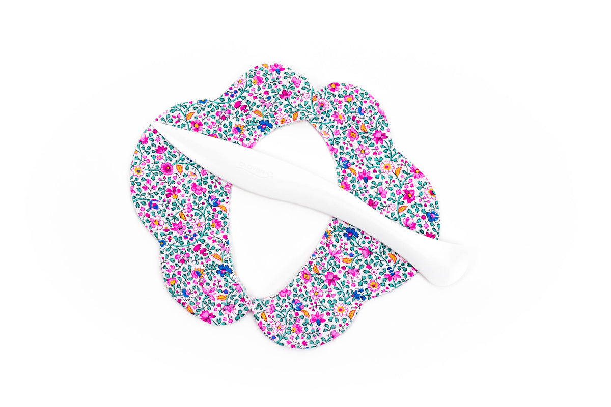 Two points are available, one at either end of the tool. One is a sharp point that is perfect for tight, limited spaces like collar points. The other point is on the edge of the spatula shaped end. This is ideal for points with a little more access. The unique shape of this point allows you to approach the point from the side, pushing with the grain of the fabric. Pressing out in this manner with the grain helps you avoid stretching or distorting your fabric.