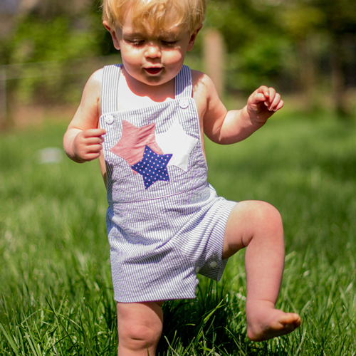 To transition to cooler days, pair this romper with a shirt or blouse like the one found in the Johnny pattern.