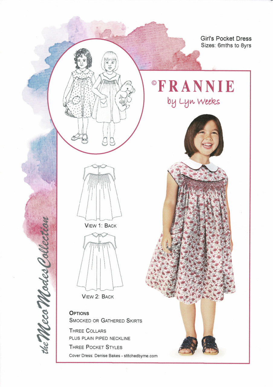 Frannie Pocket dress by Lyn Weeks, Smocked or gathered skirt, Three collar styles, Three Pocket styles.