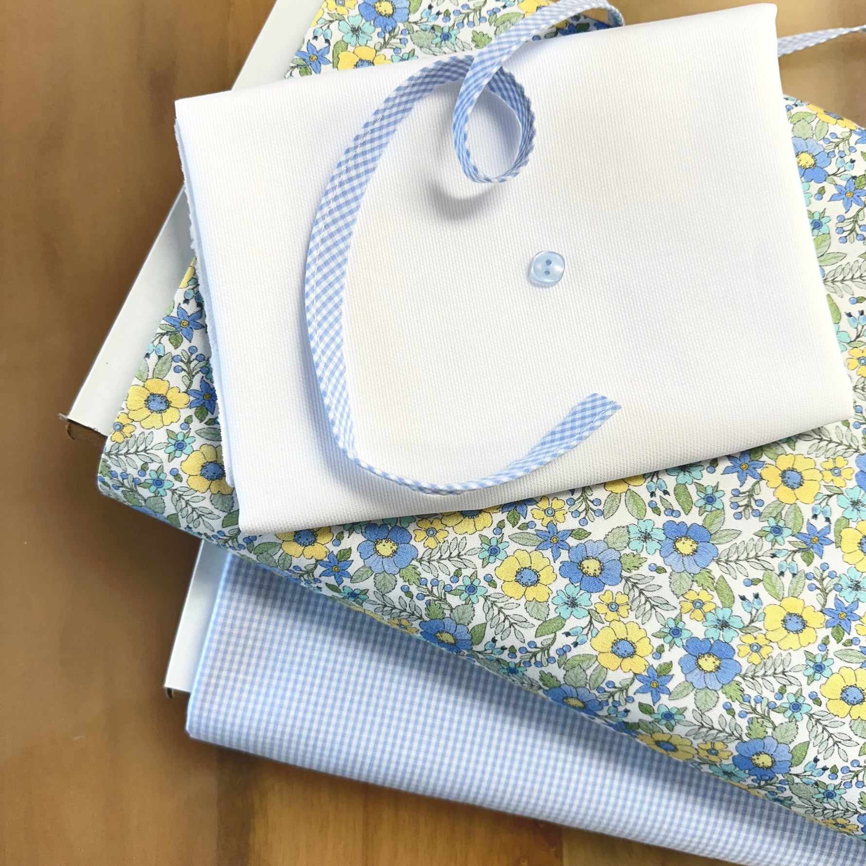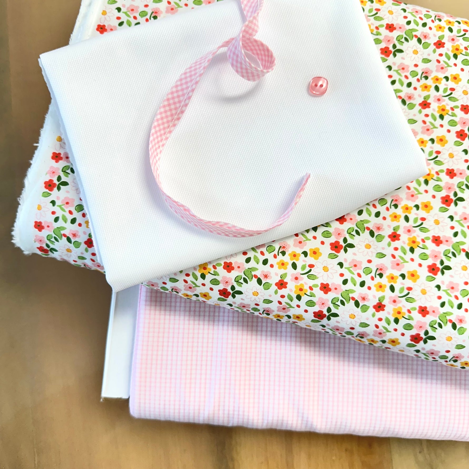 Let us help you design for next Frannie dress! A stunning 60" wide fabric is accented by a fun lining, plus a piece of white pique for a classic collar. We also included needed notions such as elastic, piping and a button. Each kit is generously cut to give you more fabric than you'll need, making it easy to sew any size with plenty of room to spare. The pattern is sold separately so you can make many more Frannie dresses in the future!