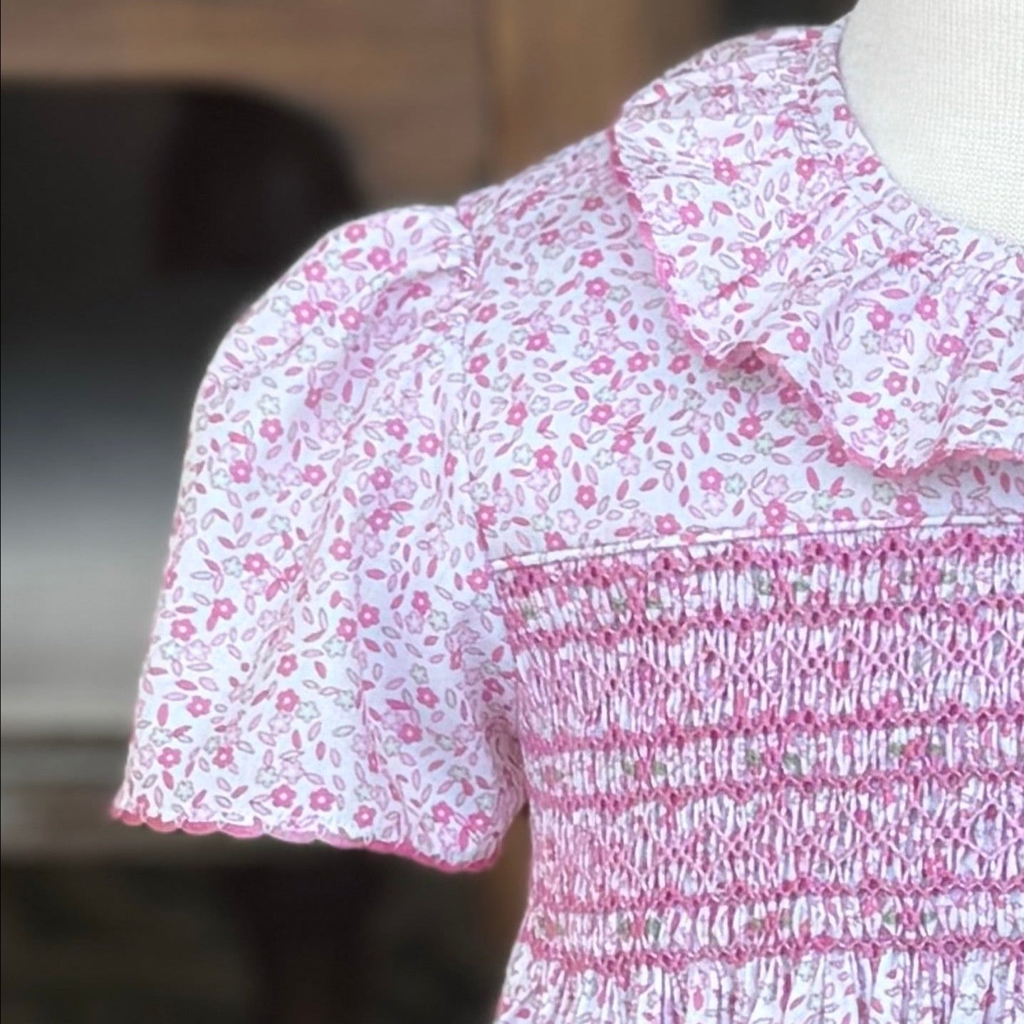 We love our classic smocked Children's Corner Lee. This kit is the sample as featured in the DMC Scalloped Hem video. See our blog for further instruction on this look. This kit includes the pre-pleated fabric and notions needed for this adorable dress!