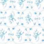This fabric has a blue floral print on a solid white background.