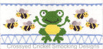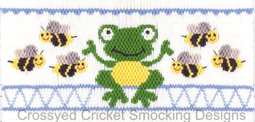 A frog hanging out with some friendly bees. 9 rows or 166 pleats on a yoke.