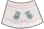 Smocking plate with hippos and a geometric design. 9 rows of smocking on a yoke.