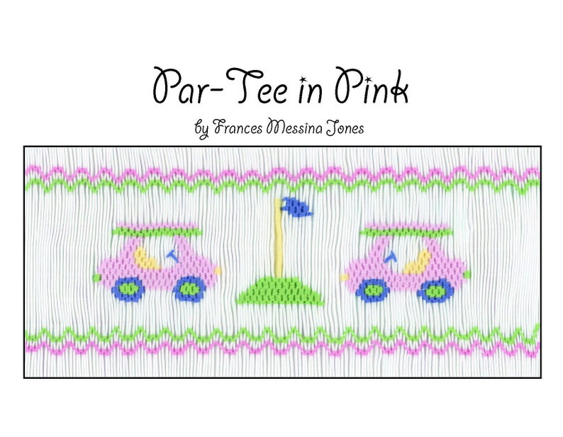 Smocking plate with golf carts and a putting tee. 7 rows of smocking on a yoke.
