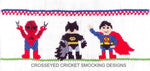 Smocking plate with superheroes: Spider-Man, Batman and Superman. 7 3/4 rows of smocking on a yoke.