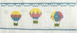 Smocking plate with three hot air balloons in the clouds. 8 rows of smocking on a yoke.