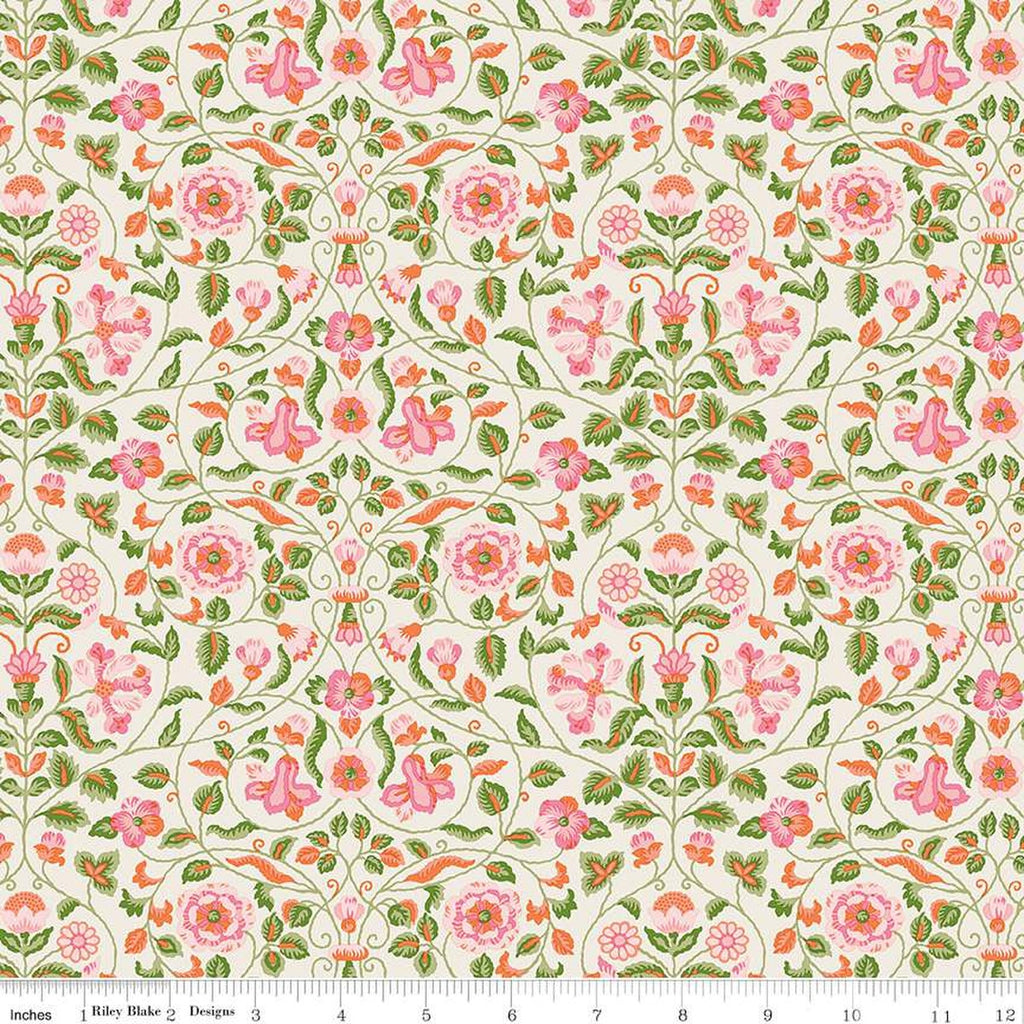 Liberty Fabrics are traditionally screen printed onto soft Lasenby cotton. This base is suited for craft projects, apparel, and classic patchwork quilting. The possibilities are as endless as your imagination. Discovered as a hand-painted artwork in the Liberty archive, this majestic botanical was reinterpreted as a delicately embroidered tapestry. Its ornamental ogee trail follows a characteristic Arts & Crafts mirrored repeat, adorned with a plethora of stylised roses, sunflowers, daisies, lilies, and honeysuckle.