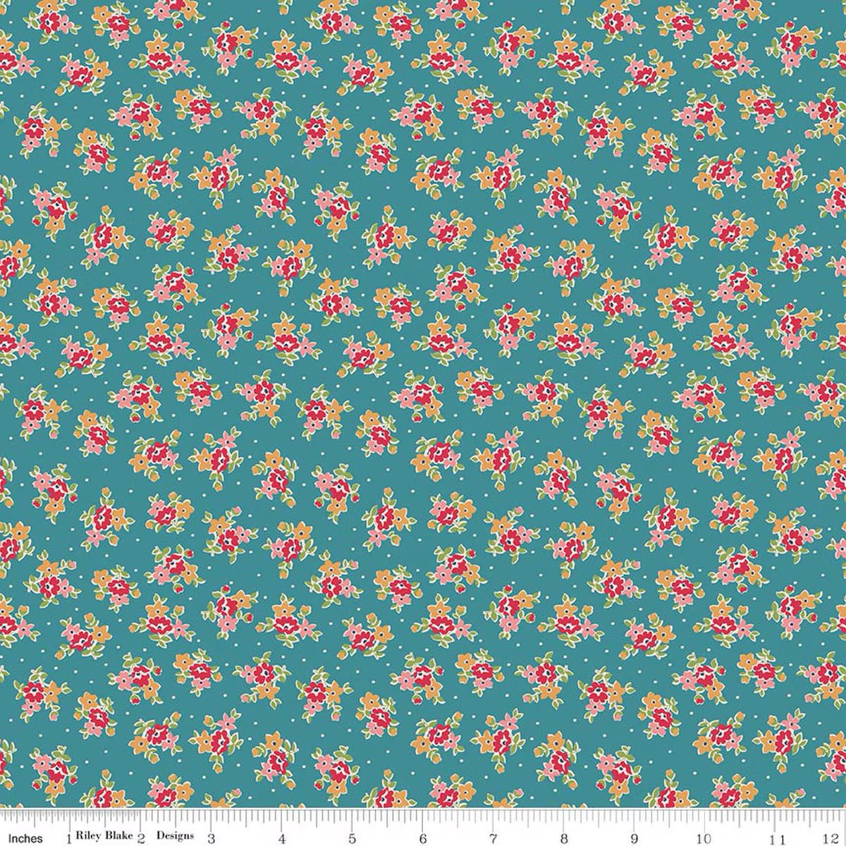 This print features scattered bouquets and pin dots.