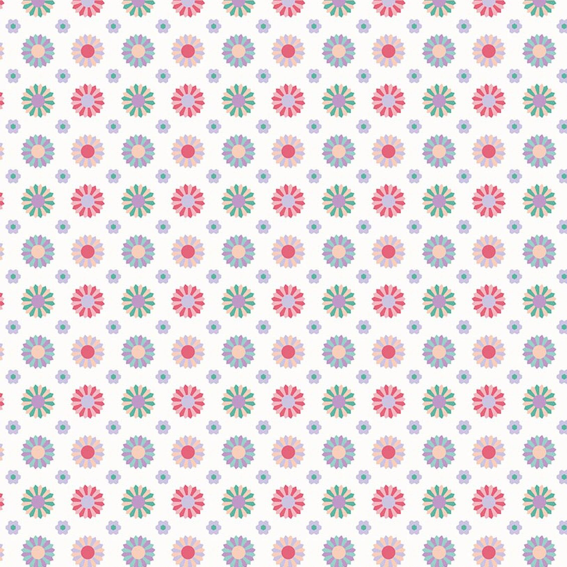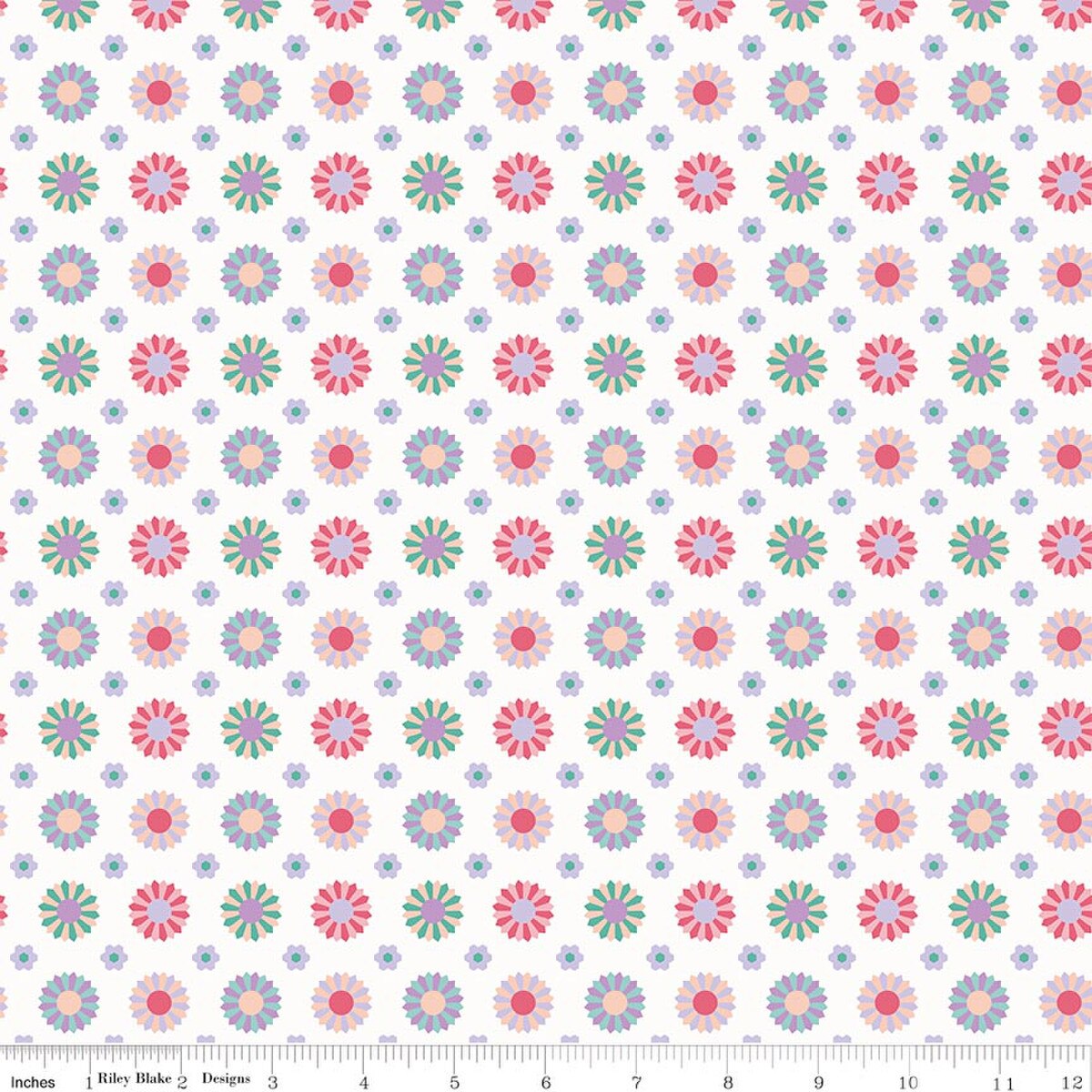 This print features an array of Dresden plates and blossoms.