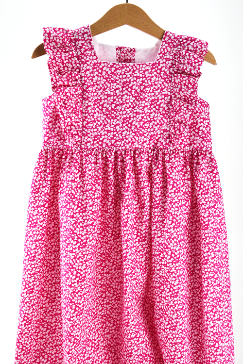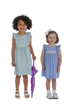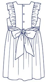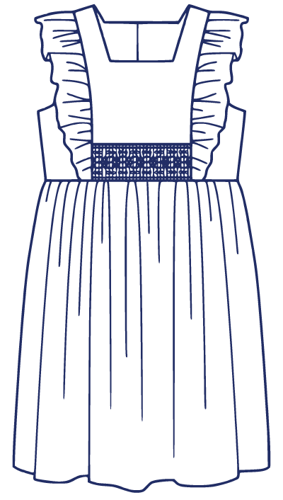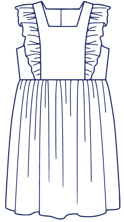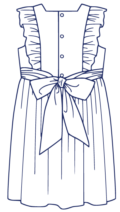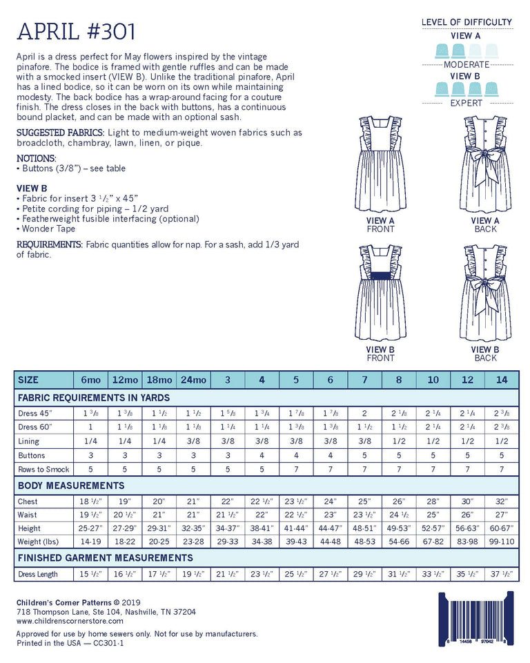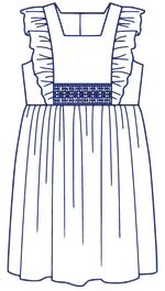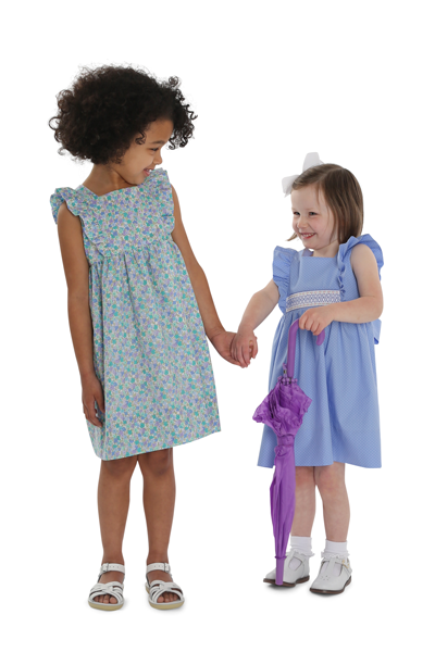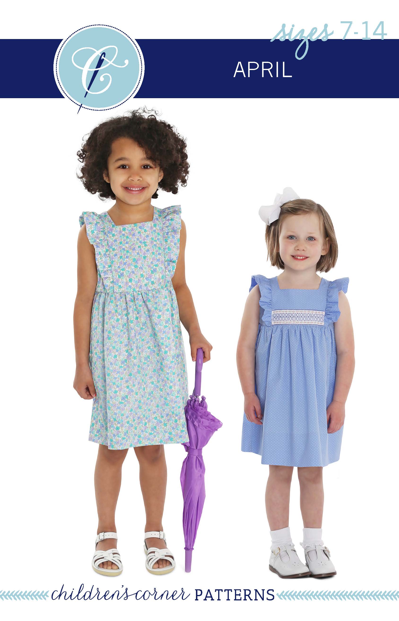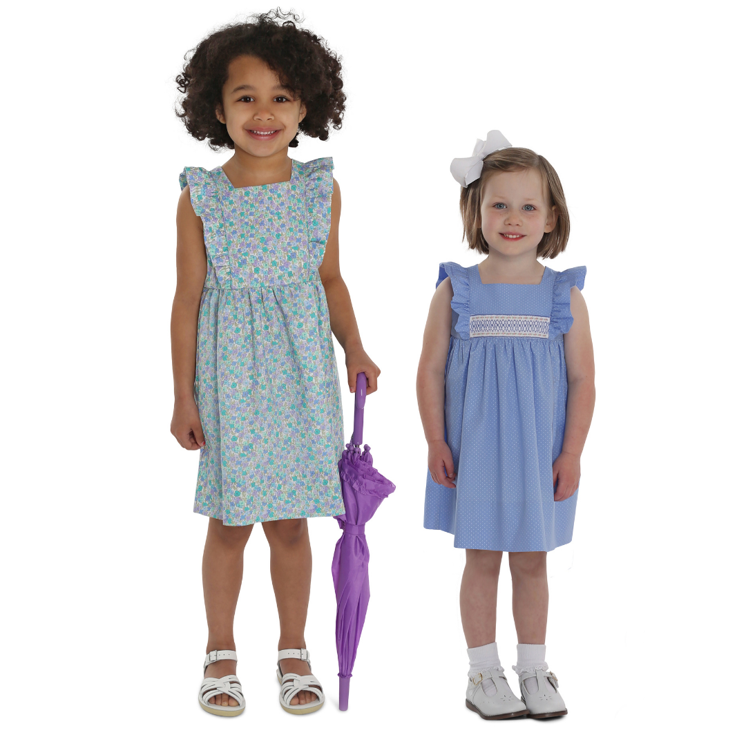 April is a dress perfect for May flowers inspired by the vintage pinafore. The bodice is framed with gentle ruffles and can be made with a smocked insert (View B). Unlike the traditional pinafore, April has a lined bodice, so it can be worn on its own while maintaining modesty. The back bodice has a wrap-around facing for a couture finish. The dress closes in the back with buttons, has a continuous bound placket, and can be made with an optional sash.