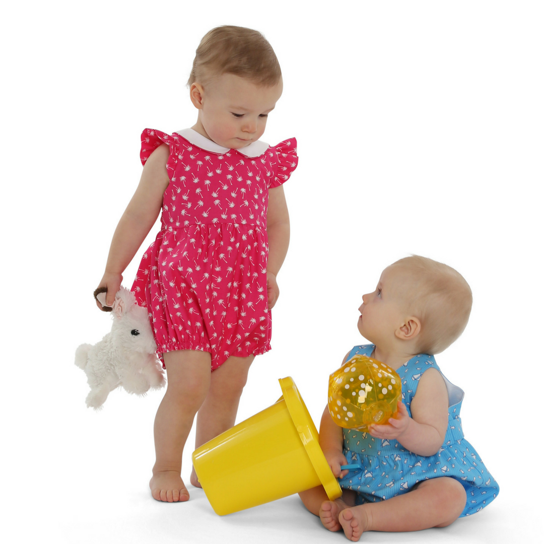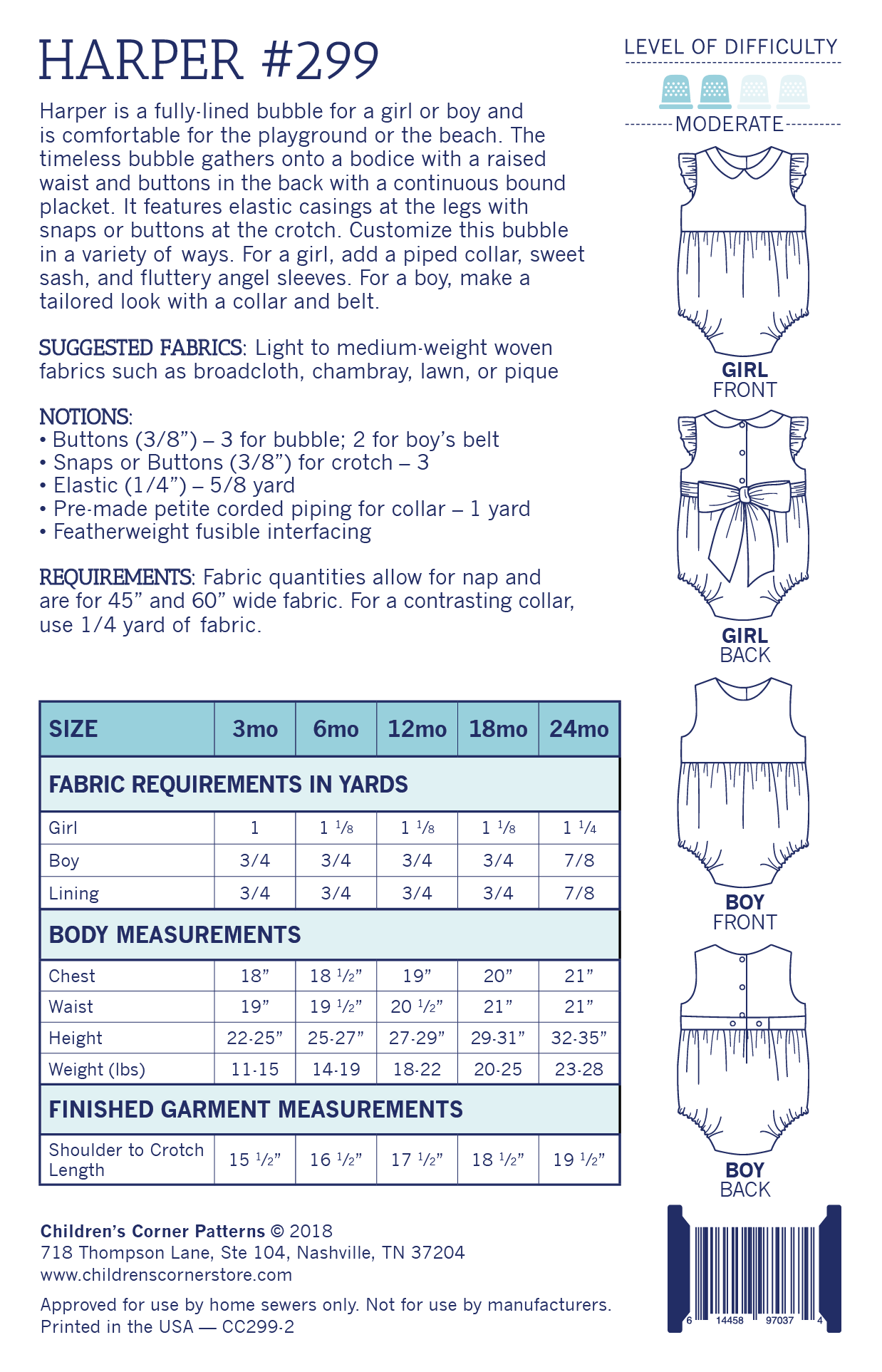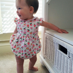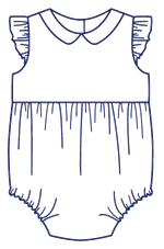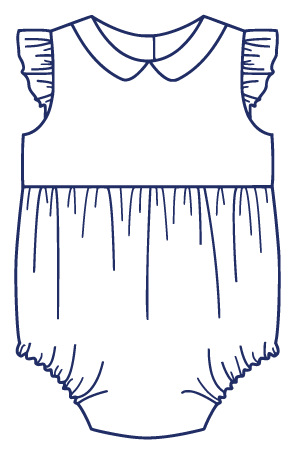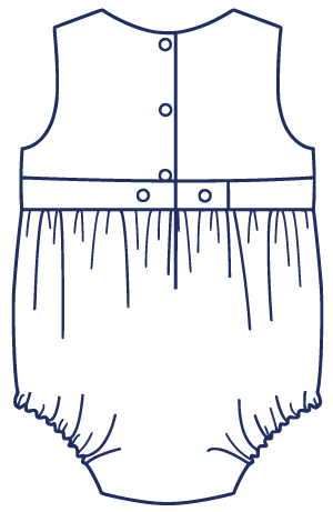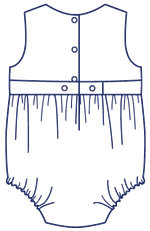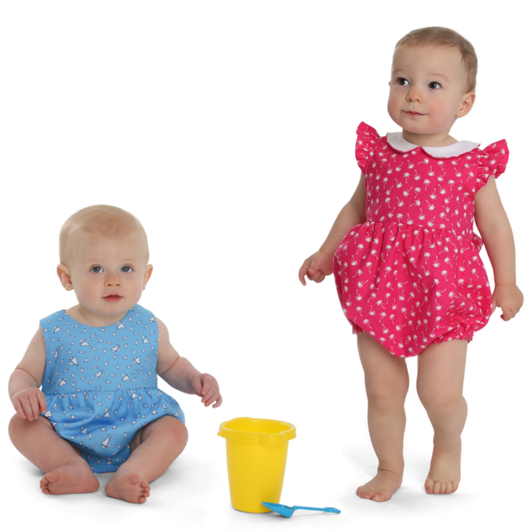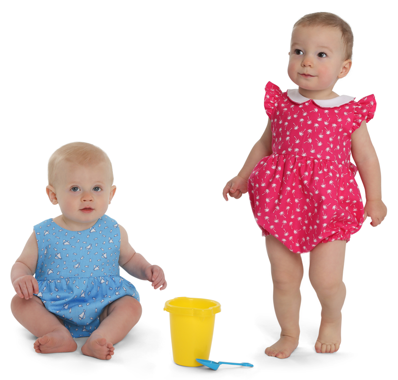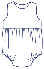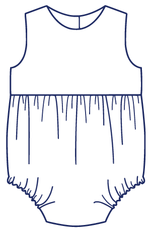 Harper is a fully-lined bubble for a girl or boy and is comfortable for the playground or the beach. The timeless bubble gathers onto a bodice with a raised waist and buttons in the back with a continuous bound placket. It features elastic casings at the legs with snaps or buttons at the crotch. Customize this bubble in a variety of ways. For a girl, add a piped collar, sweet sash, and fluttery angel sleeves. For a boy, make a tailored look with a collar and belt.