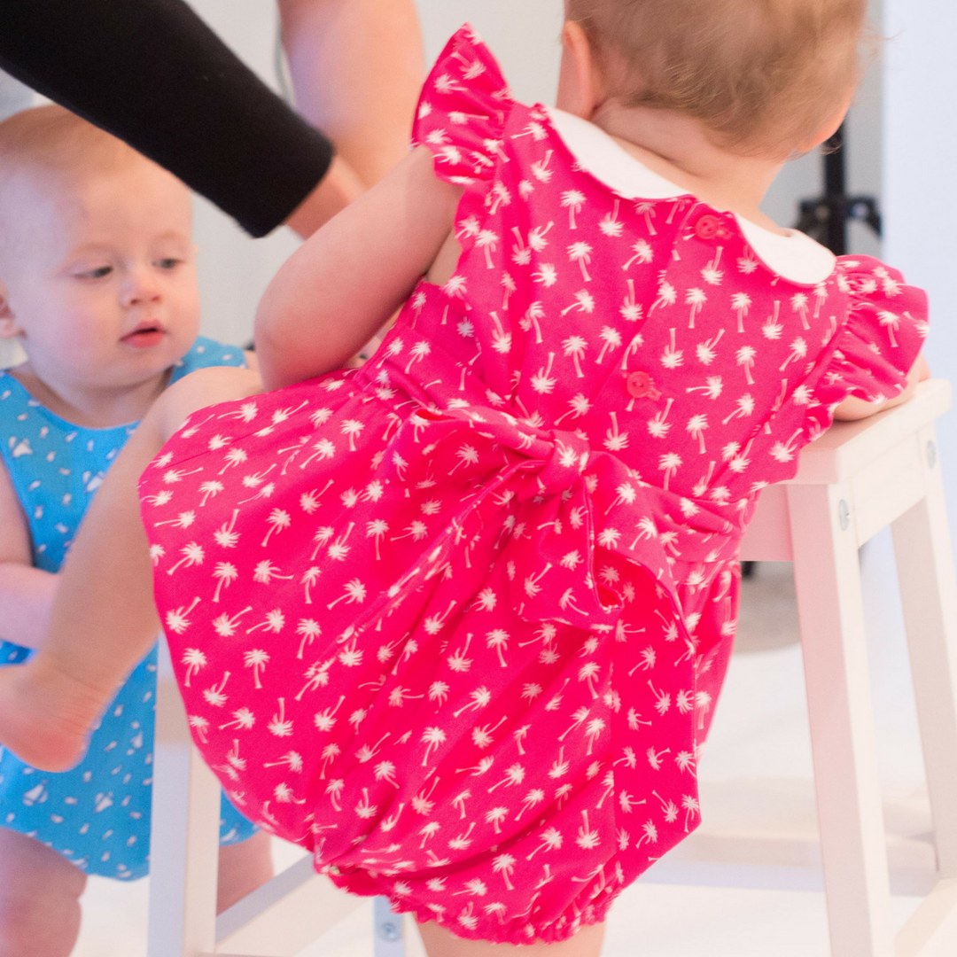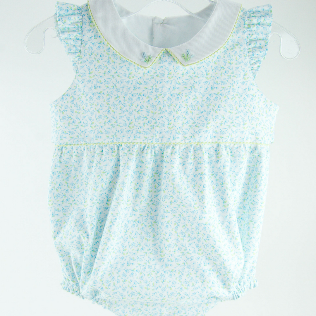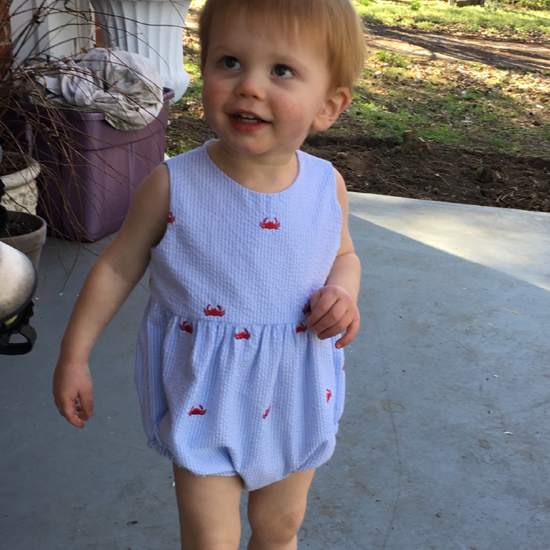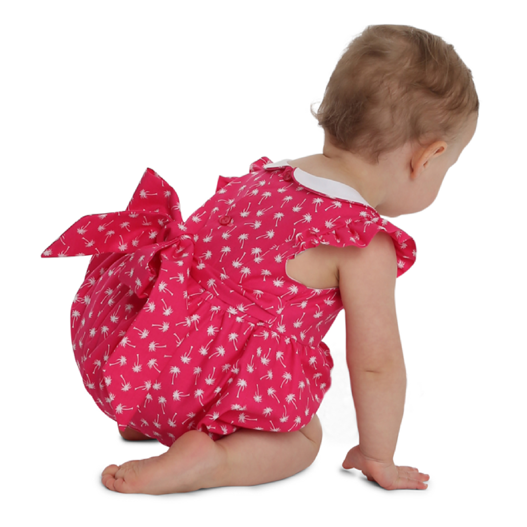 Harper is a fully-lined bubble for a girl or boy and is comfortable for the playground or the beach. The timeless bubble gathers onto a bodice with a raised waist and buttons in the back with a continuous bound placket. It features elastic casings at the legs with snaps or buttons at the crotch. Customize this bubble in a variety of ways. For a girl, add a piped collar, sweet sash, and fluttery angel sleeves. For a boy, make a tailored look with a collar and belt.