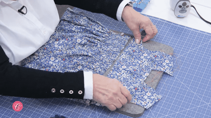 • Helpful tips for precisely tying the pleater threads and stitching the smocked skirt to the bodice.