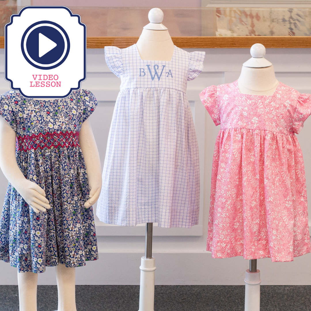 In this video lesson, Susan teaches both views of Ava plus a BONUS smocked view from start to finish. Ava is a classic dress with a raised bodice and square neck, with an Angel sleeve or sleeveless option (VIEW A), as well as, a capped short sleeve (VIEW B). The bodices are fully lined, and the skirt is gathered. Love to smock? Learn to sew the Smocked Ava with this video lesson! With a few rows of smocking placed just below the bodice, the opportunities to customize are abundant.