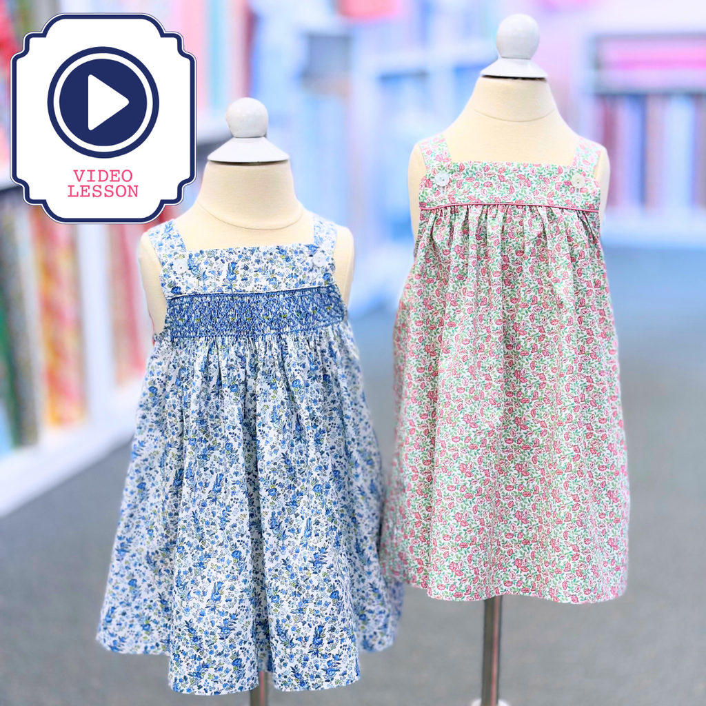 The Katina pattern is a timeless sundress and jumper featuring sweet straps that button onto a fully lined front yoke for a polished, classic look. The skirt can be made gathered for an easy everyday style or smocked for heirloom charm, giving you beautiful versatility in one pattern. Underarms are finished with a clean bias band for a smooth, professional result. In this comprehensive video lesson, every technique is demonstrated step by step, allowing you to sew alongside Susan as she shares expert tips and helpful shortcuts. You’ll gain the confidence and skills to create a beautifully finished dress you’ll be proud to have sewn — and she’ll love to wear.