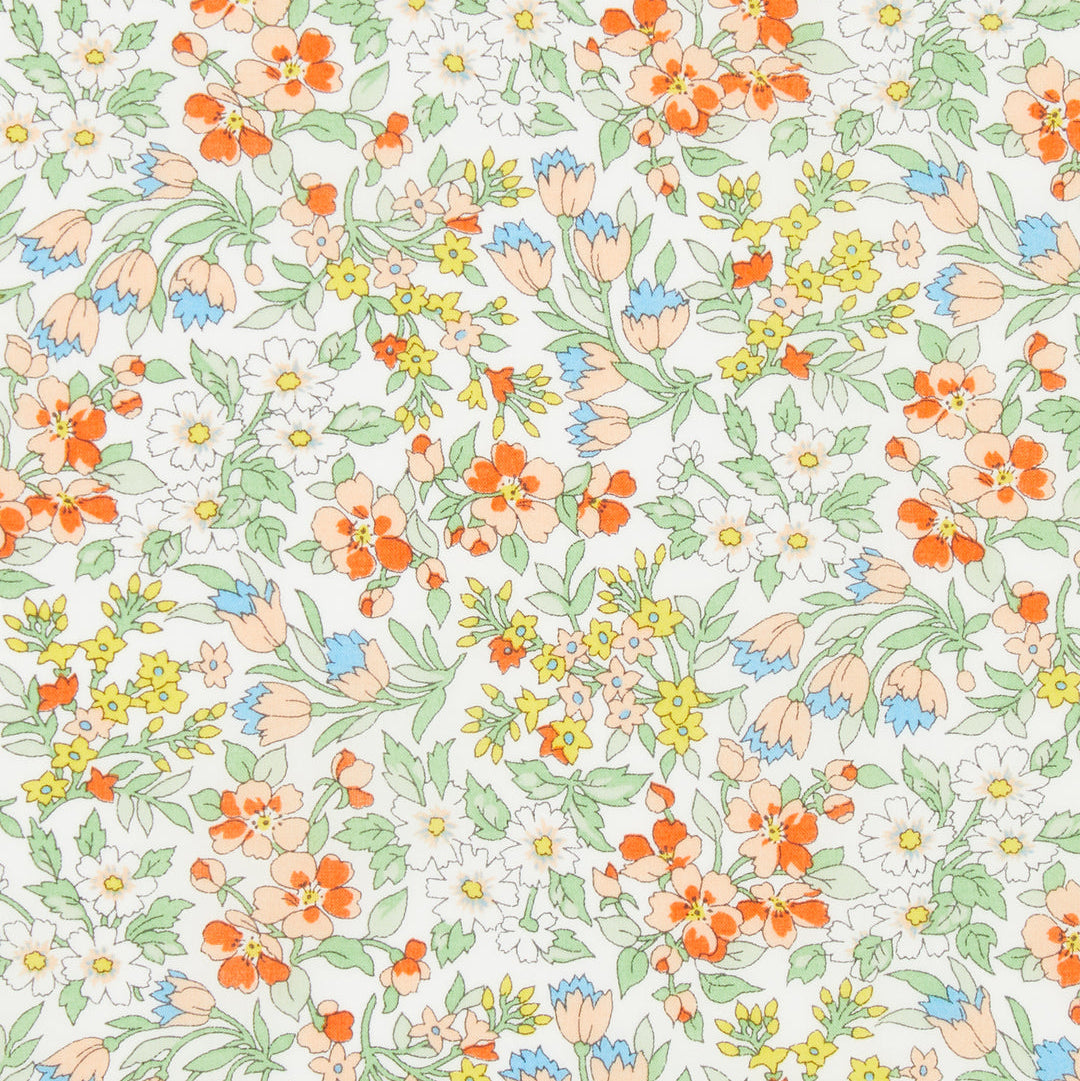 Inspired by a hand-painted artwork from the Liberty archive dating back to 1989, Nazanin features a delicate floral posy. This composition weaves together a tapestry of meadow blooms, including daisies, roses, and bell flowers, creating a delightful dance of romantic, Regency-style botanicals.