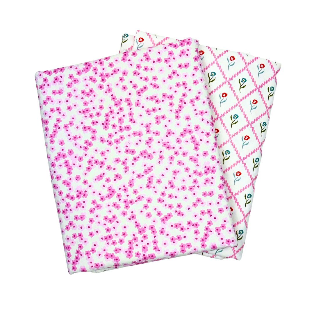 2 yard pieces of two complementary fabrics for a total of 4 yards of fabric. Let us do the design work for you! This amount of fabric will be enough for many of our patterns!