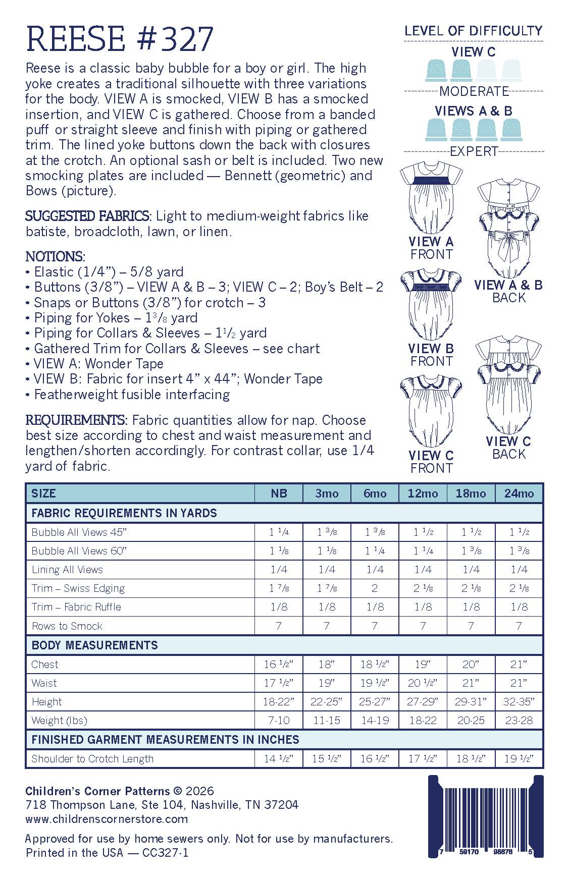 You don't want to miss out on this exclusive package for classic Children's Corner Pattern #327 Reese! This pack includes brand new & exclusive products. Available while supplies last.