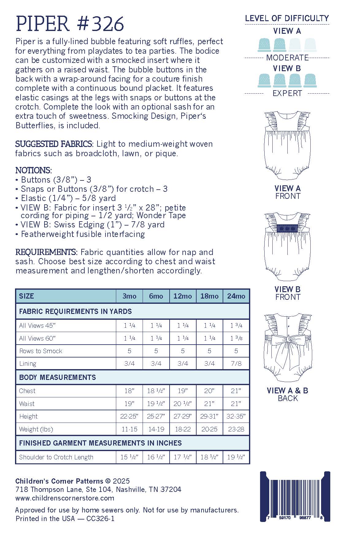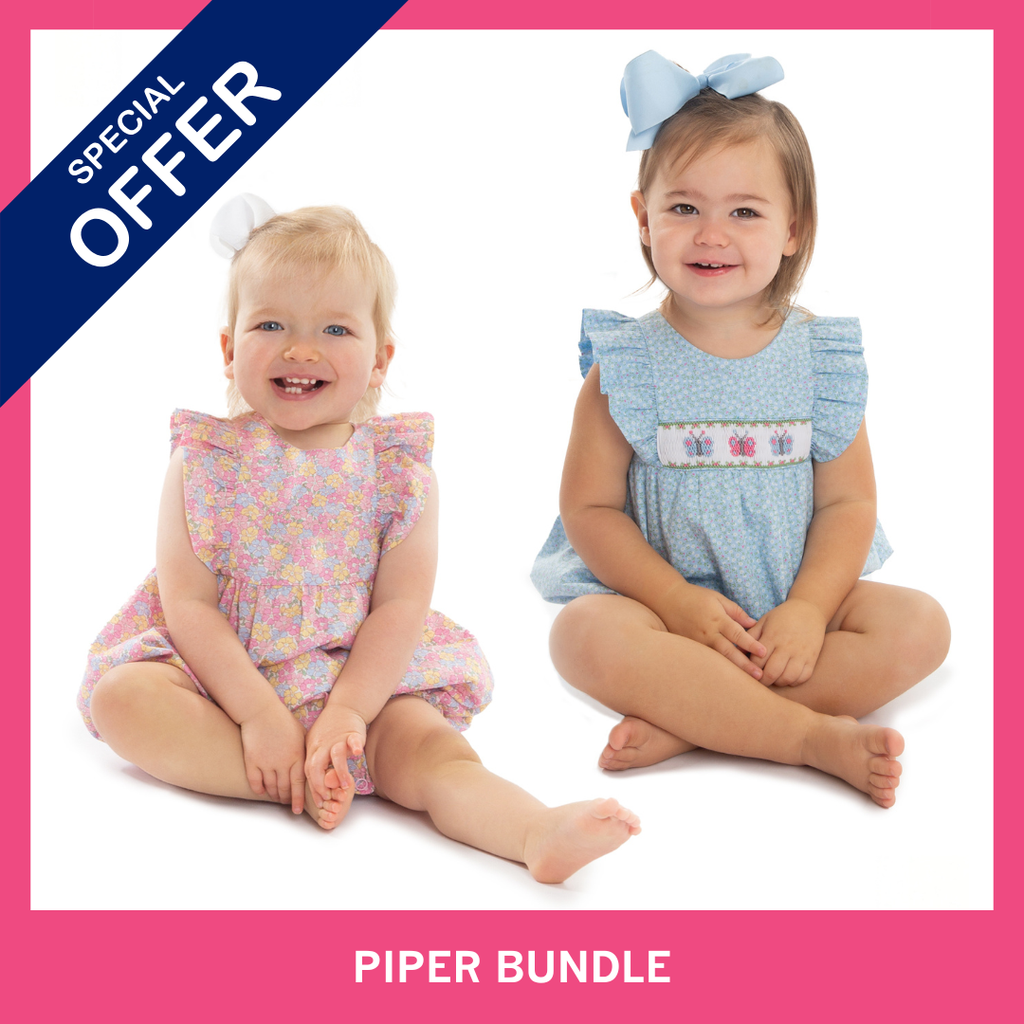 Welcome our newest Children's Corner Pattern - Piper! To celebrate, this Piper bundle is filled with all of the Piper products and a new custom storage bag filled with 15 Children's Corner smocking plates to add to your collection. Available for a limited time or while supplies last.