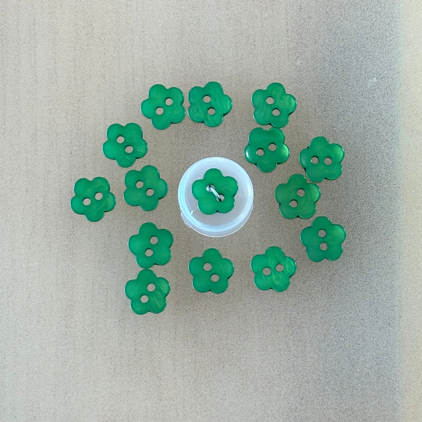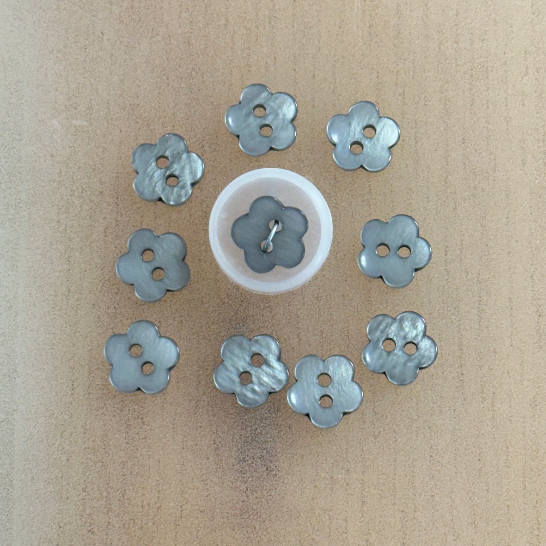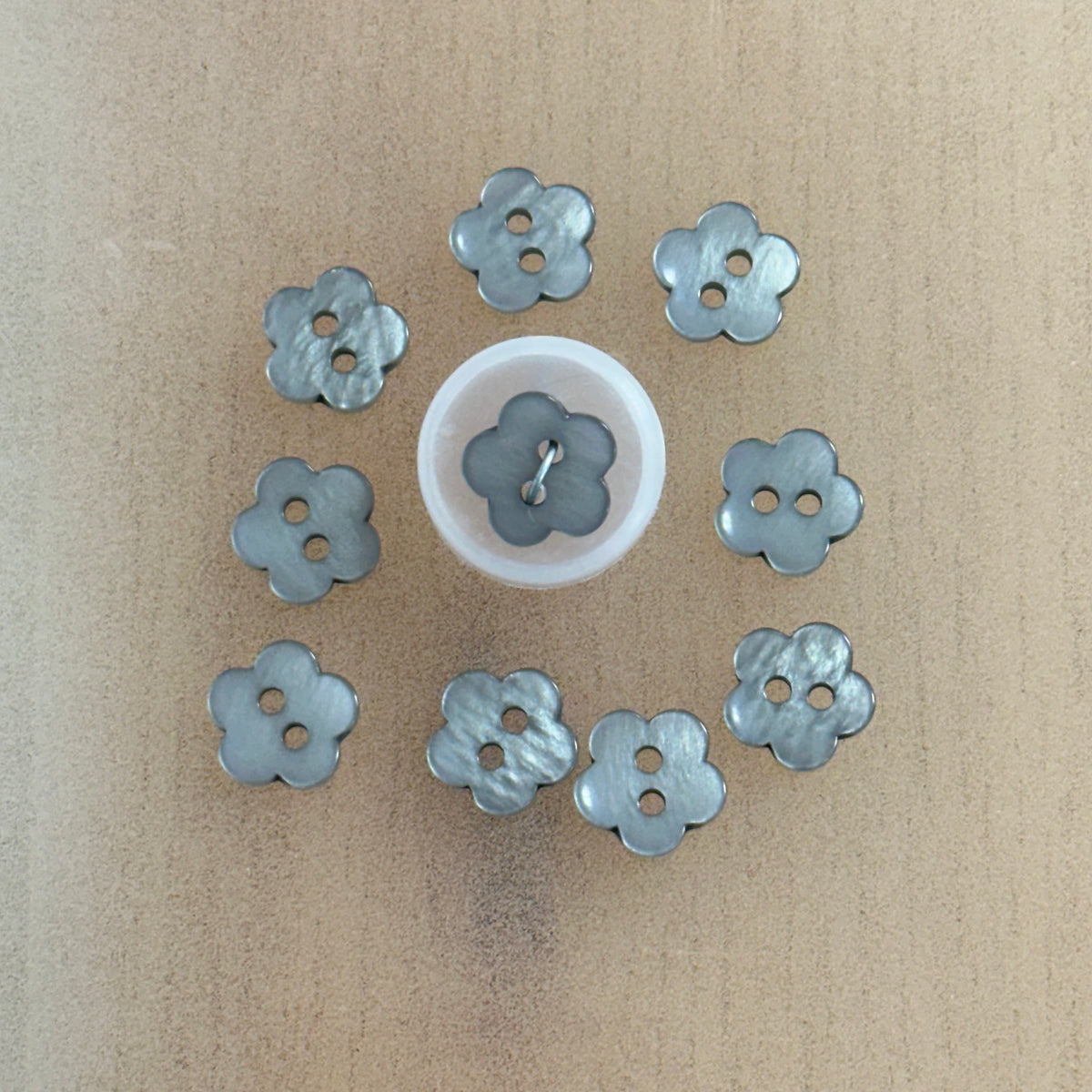 High gloss, 2-hole flower button. Size 20.