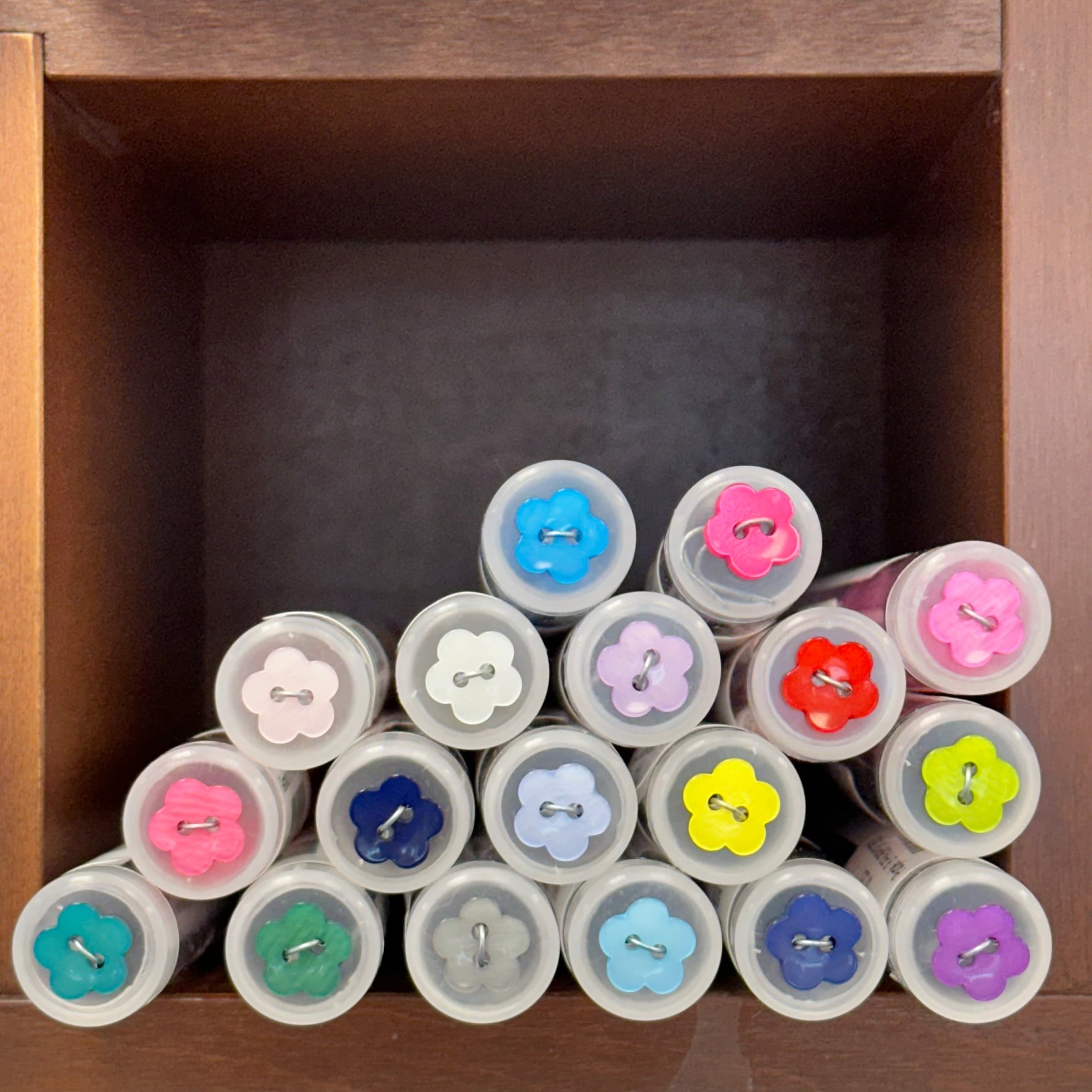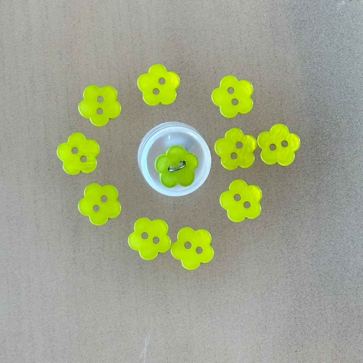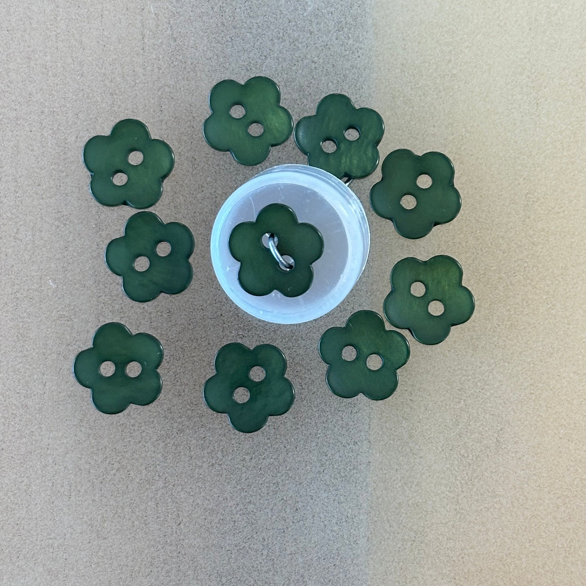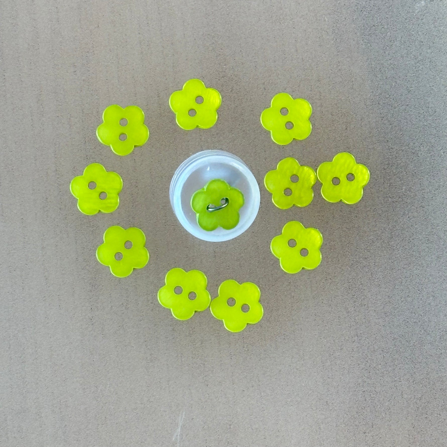 High gloss, 2-hole flower button. Size 20.