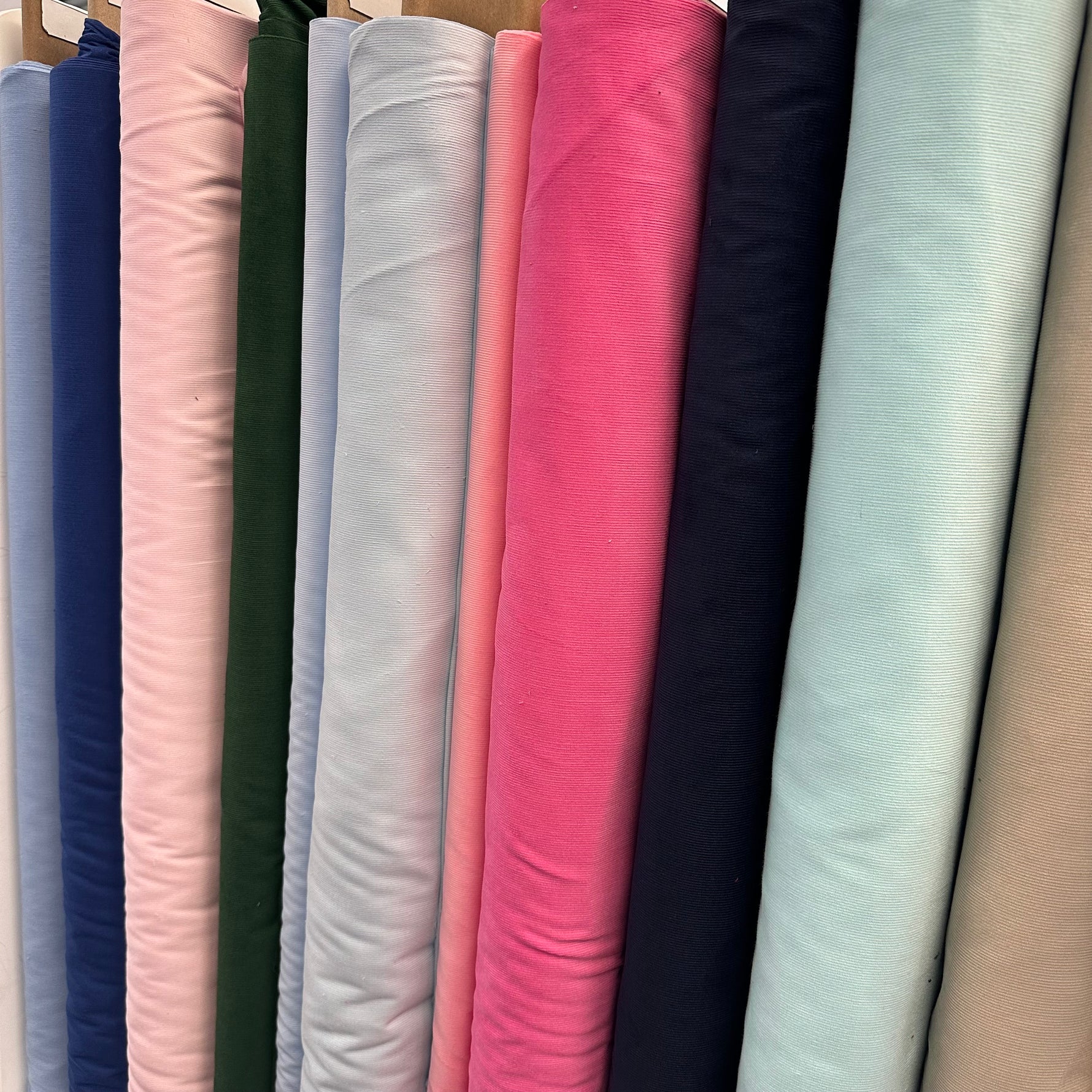 We stock a fine wale corduroy ideal for sewing children's clothing. Corduroy makes a beautiful choice for dresses as well as cozy and more durable pants during the cooler temperatures. It is also light-weight enough for smocking projects.