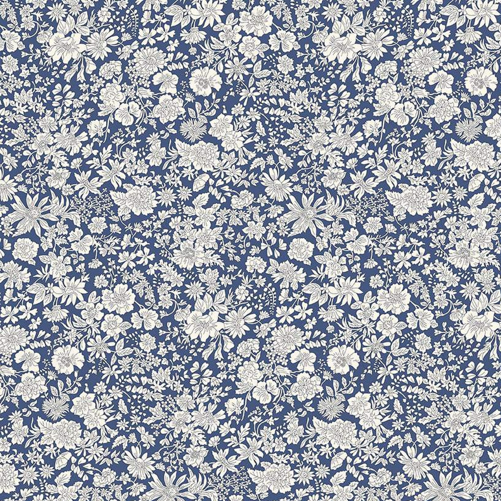 Emily Belle is a celebration of botanicals including daisies, marguerites, peonies and cornflowers. Drawn in outline and arranged over a plain coloured ground, the soft, fine lines and delicate tonal qualities are designed to coordinate smoothly with a wide variety of Liberty prints from our vast archive, for a seamless mix-and-match effect.