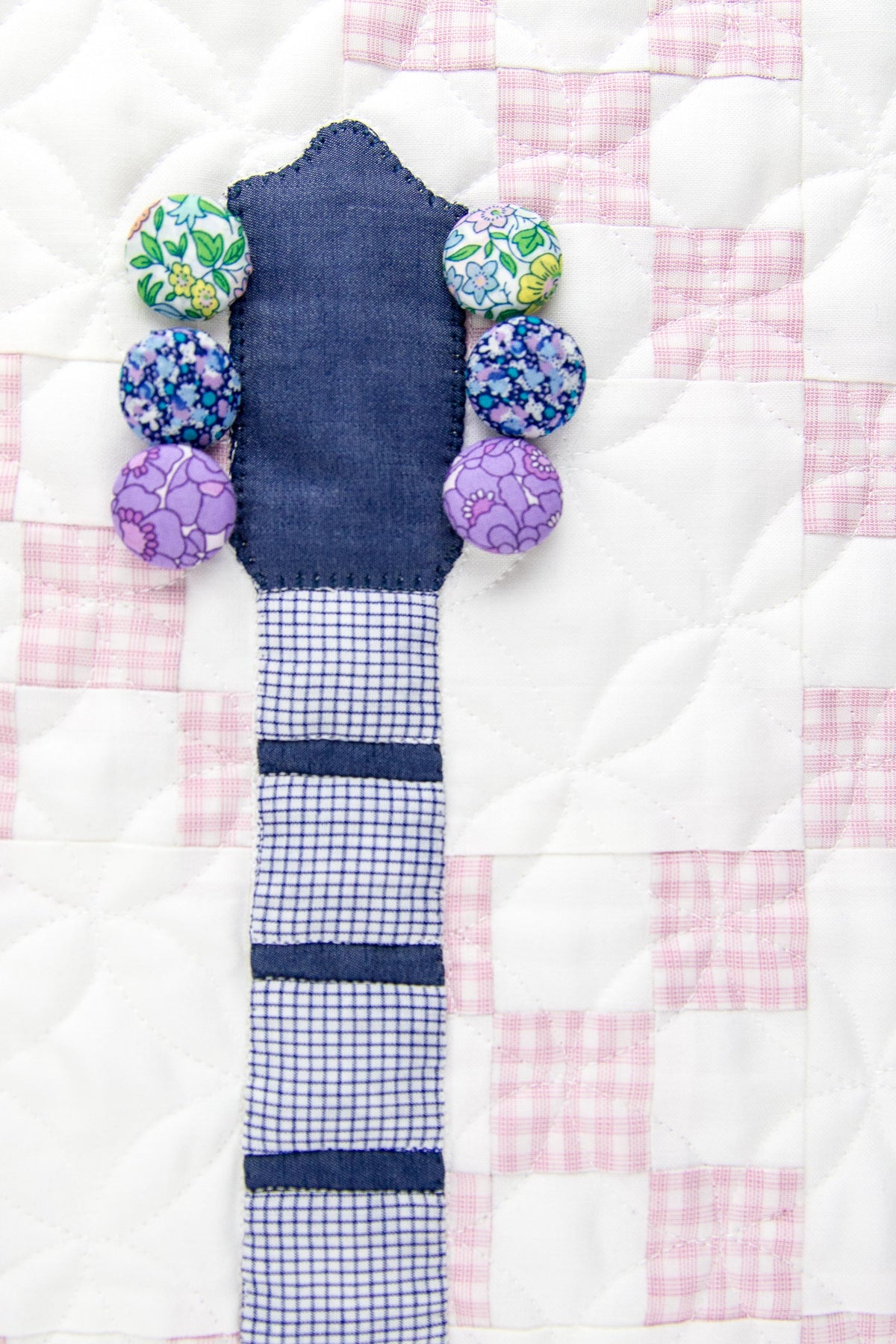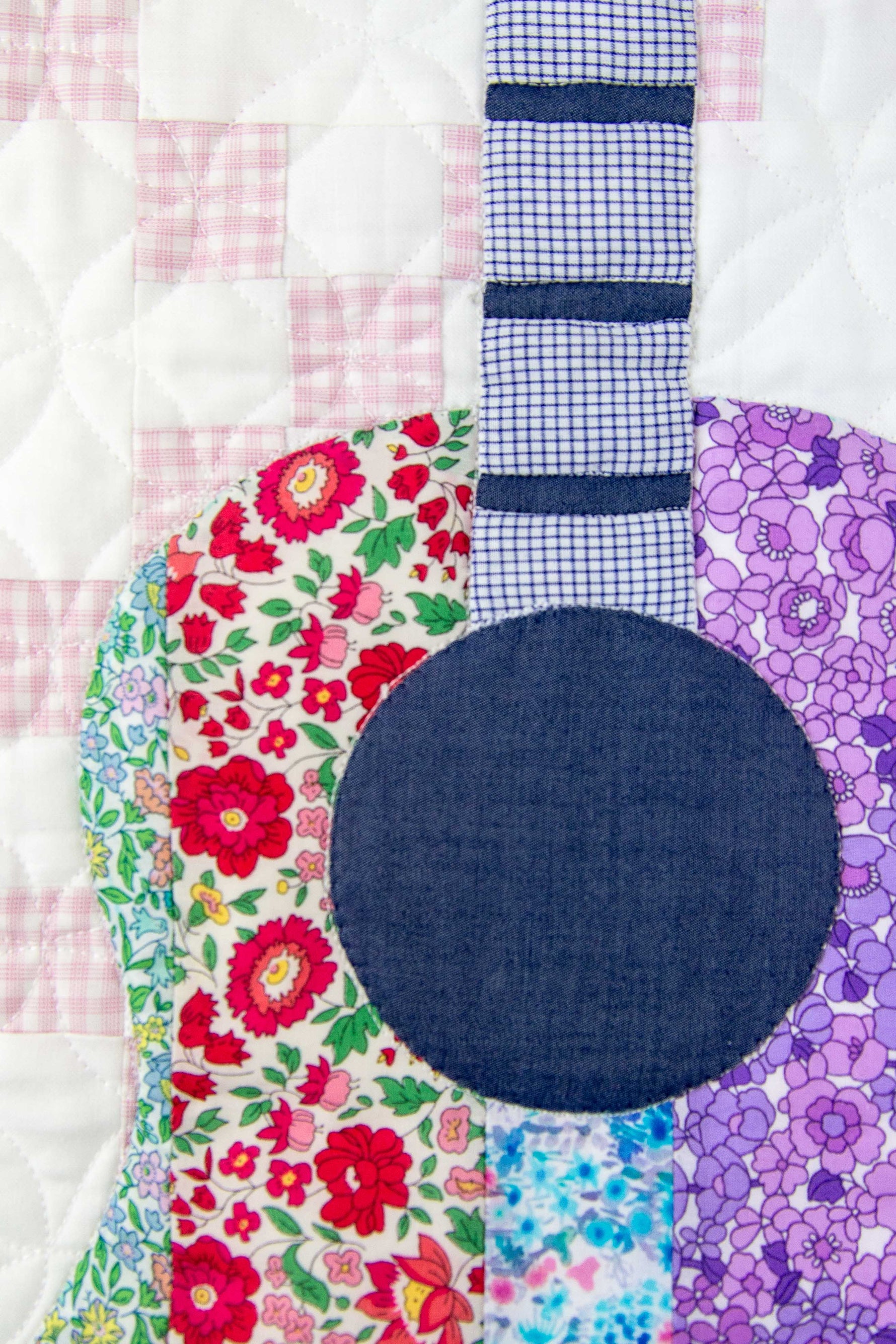 Our row, designed by Chris Schulte, highlights fabrics from our store including Liberty of London to make this floral guitar. While this can be used in a quilt, we also see our "row" pattern as a fun project to add to a Harper.