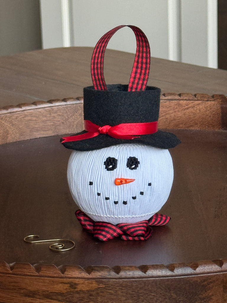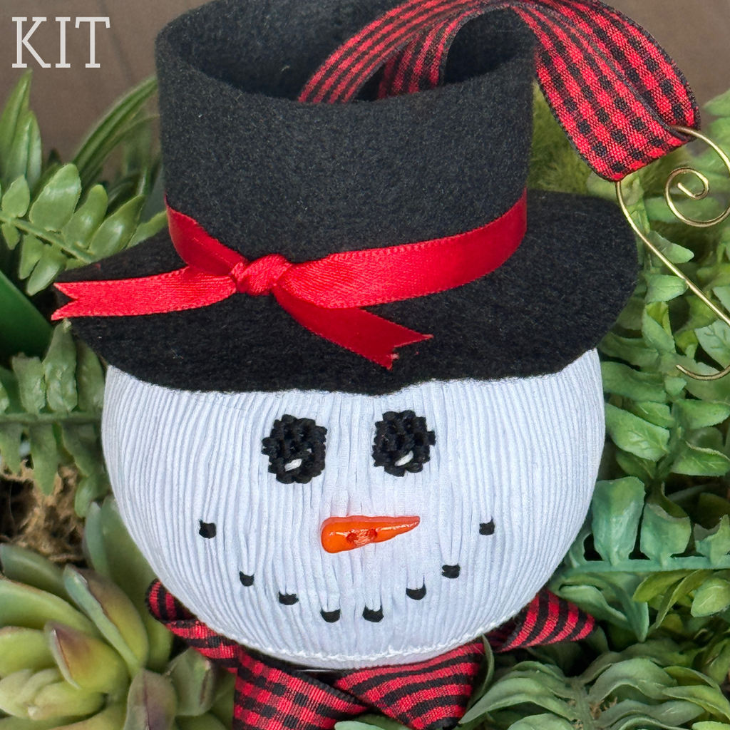 If you love our smocked ornaments, you can't miss this adorable new kit! Melissa created this smiling snowman ornament and we have put together kits so you can make your own! The kit includes all needed items except the 3" styrofoam ball. Visit our blog to see videos on how to construct the ornament and the additional snowman features.